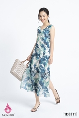 Đầm maxi có lớp lót, cổ V, không tay, vạt xẻ cách điệu
