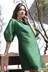 Kiểu dáng: Đầm suông cổ tròn ngang, lá cổ đính đá trang trí, tay phồng cách điệu
