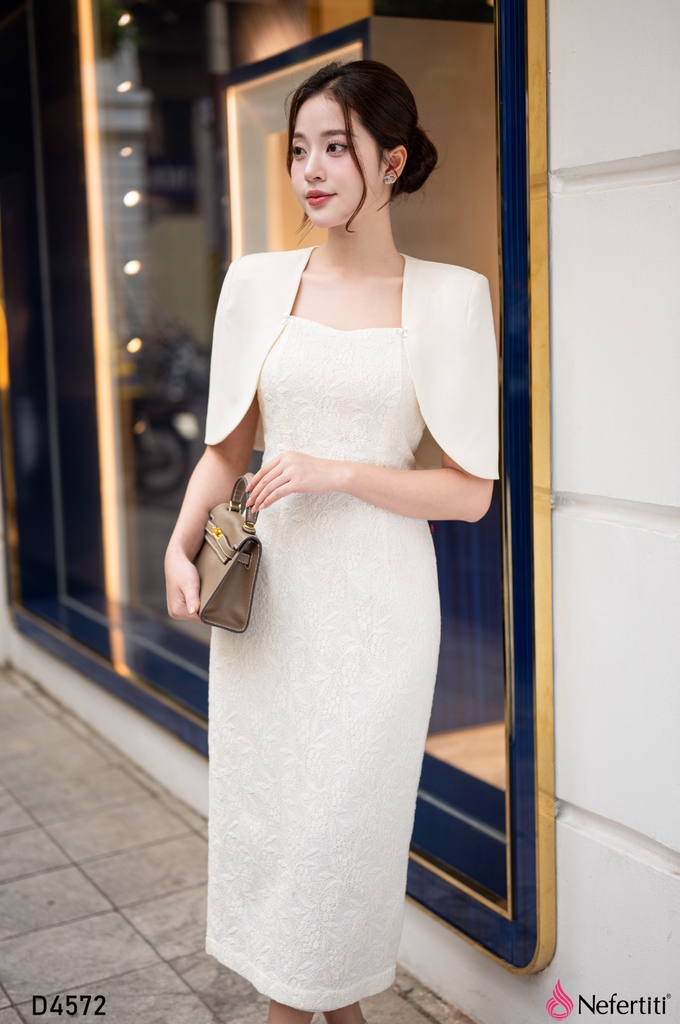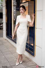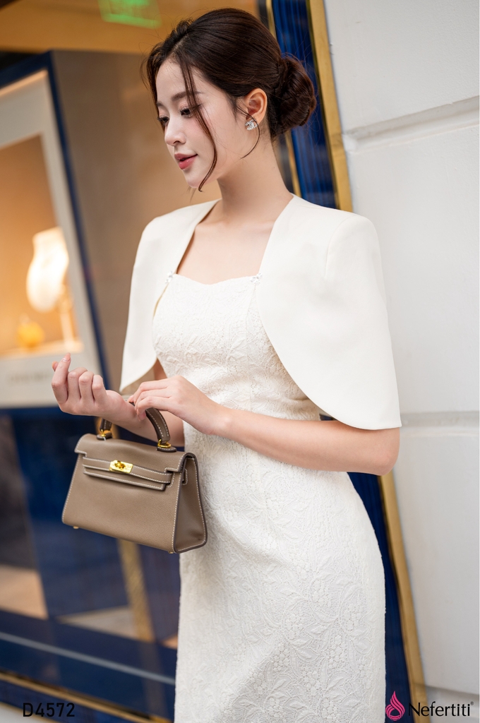 3D4572 - Đầm Tiệc Trắng Khoác Vai