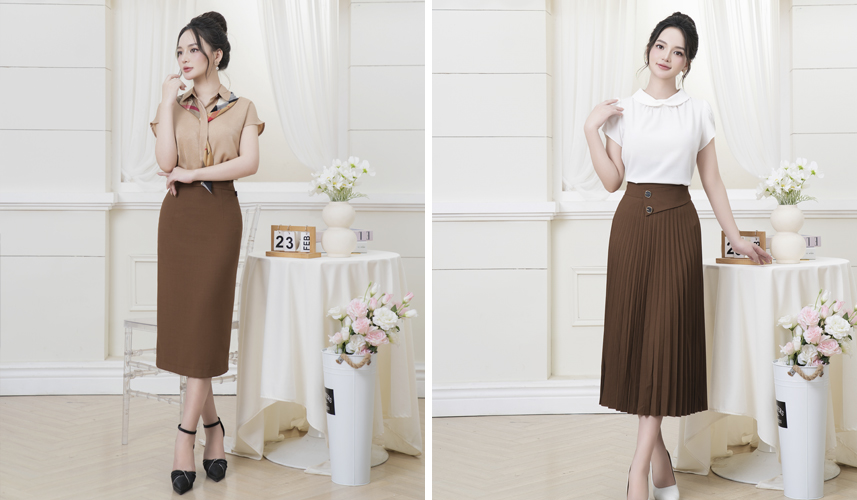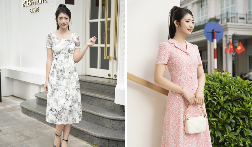 Đối với những buổi dạo phố hay các chuyến du lịch, bộ sưu tập cũng mang đến nhiều lựa chọn hấp dẫn. Các mẫu chân váy và áo sơ mi được thiết kế với phong cách trẻ trung, hiện đại, đảm bảo sự thoải mái và dễ chịu nhưng vẫn giữ được vẻ thời thượng. Màu sắc tươi sáng, họa tiết sống động là những điểm nhấn giúp trang phục trở nên đầy sức sống và thu hút ánh nhìn.